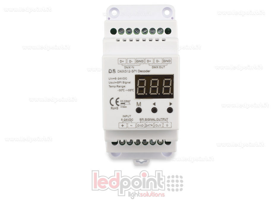 SYSTÈMES SKYDANCE CATALOGUE FAQ Decodeur de signal DMX à signal SPI et contrôleur RF avec écrain tactile. Compatible avec 32 types de ruban IC. Installable sur rail din.