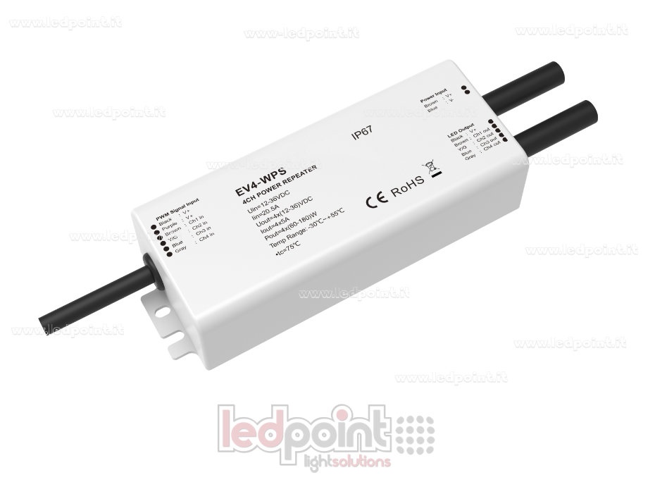 SYSTÈMES SKYDANCE CATALOGUE FAQ Amplificateur de signal étanche IP67 à tension constante, 12-36V, avec 4 canaux de 5A. Pour rubans led à tension constante, RGBW. Installé en serie ou en parallèle il permet d'éteindre le signal sans limites.