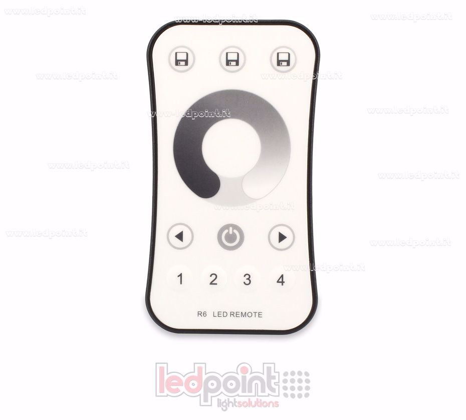 SYSTÈMES SKYDANCE CATALOGUE FAQ Télécommande RF pour contrôleur LED monochromatique, avec la possibilité de régler 4 zones. Roue pour un réglage ultra sensible des couleurs. Chaque télécommande peut être combinée avec un ou plusieurs récepteurs. Alimenté par une pile CR2032.