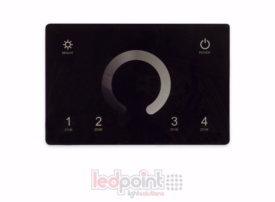 SYSTÈMES SKYDANCE CATALOGUE FAQ Panneau en verre noir monochrome à 4 zones DMX512, également utilisable comme télécommande RF monochrome à 4 zones. Lorsqu'elle est utilisée comme télécommande RF, chaque zone peut contrôler à distance plusieurs contrôleurs LED RF 2.4G. Alimentation 110-240VAC. Pour boîte murale 120x80mm
