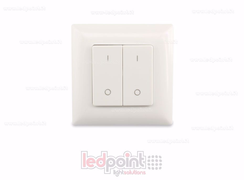 SYSTÈMES SKYDANCE CATALOGUE FAQ Télécommande RF murale pour bandes monochromes zones. Chaque télécommande peut être associée à un ou plusieurs récepteurs. Alimenté par une pile CR2032. Amovible et facilement attaché n'importe où, ou à monter sur la base de la boîte murale.