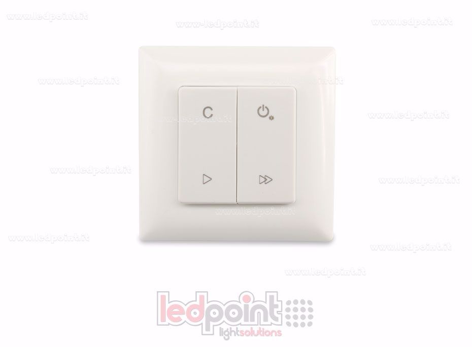 SYSTÈMES SKYDANCE CATALOGUE FAQ Télécommande RF murale pour rubans monocouleur, CCT, RGB /RGBW. A chaque télécommande peut être apparié un ou plusieurs recepteurs. Alimenté par pile CR2032. Amovible et facilement attachable partout ou à monter sur la base du panneau murale.