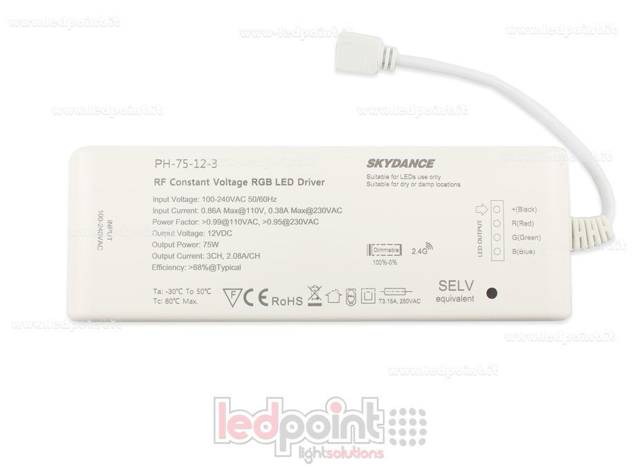 Transformateur 75W 12V, 3 canaux,  Wireless SkyDance SK-PH-75-12-3