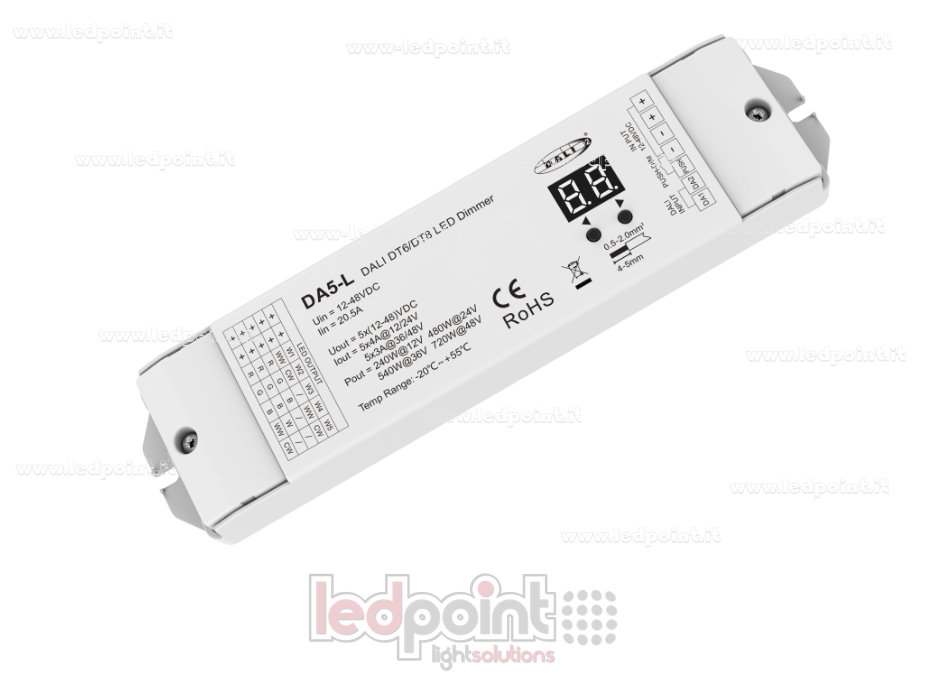 SYSTÈMES SKYDANCE CATALOGUE FAQ Controleur DALI à tension constante avec 4 canaux de 5A. Contrôlable par master DALI, chaque adresse travaille séparément.