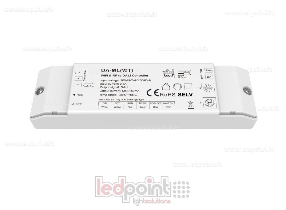 - Signal d'entrée : WiFi + RF 2.4GHz + Push Dim