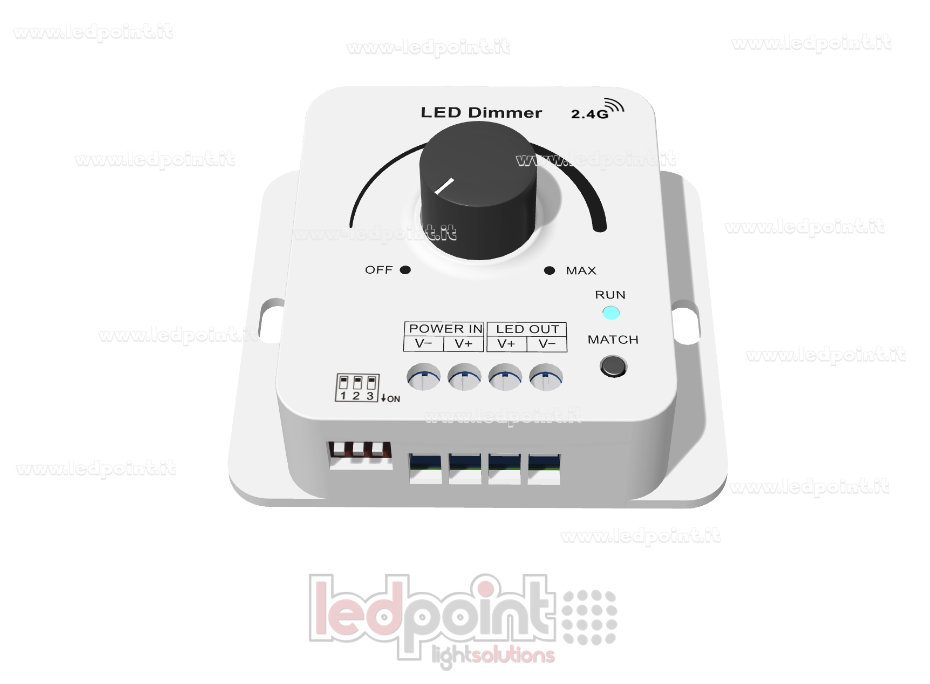 - Signal d'entrée : RF 2.4GHz + Bouton rotatif